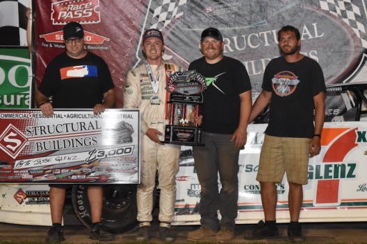 Winner's sponsors: Glenz’s Longhorn Chassis is sponsored by Ricky Lemmen Trucking, Brunzlick Trucking, Goulet’s Garage, GreenBuilt, White City Glass, Conrad’s Auto Salvage, Harrelstad Log Homes, Lamm Trucking, Dixon’s Autumn Harvest Winery, Mike’s QTA, From The Ground Up, Tim’s Automotive, P&B Lumber & Hardware, Mike’s Star Market, Structural Buildings, VP Racing Fuels and Jig E Signs.