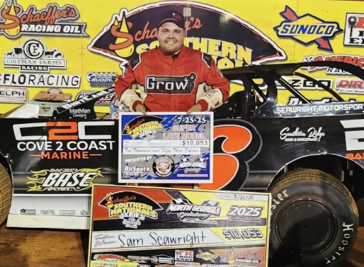 What won the race: Ending Dale McDowell's two-race win streak on the Schaeffer's Southern Nationals at North Georgia Speedway, Sam Seawright slid past his fellow front-row starter on the 29th lap and held off a late challenge from Zack Mitchell to capture the 53-lapper for a $10,053 payday. Seawright's second career series victory also ended the two-race win streak of the fourth-starting Mitchell, who won earlier in the week at Toccoa (Ga.) Raceway and Sugar Creek Raceway in Blue Ridge, Ga. The pole-starting McDowell, who won at North Georgia in 2023-24, ended up third.