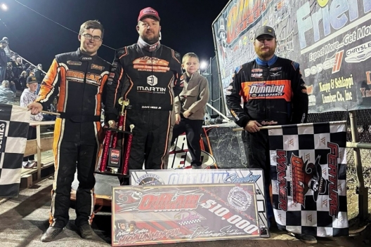 What won the race: Nearly getting sideways on the frontstretch after taking command, fifth-starting Dave Hess Jr. of Watertown, Pa., powered past home-track favorite Dylan Cecce on the 15th lap Friday at Outlaw Speedway for a $10,000 victory. Hess, 3-for-3 in his career at Outlaw, took the checkers 2.098 seconds ahead of Cecce in the caution-plagued 40-lapper co-sanctioned by Jay’s Automotive United Late Model Series and the Bernheisel Racing Components Fall Clash.