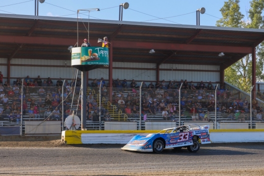 Winner's sponsors: Peterson’s Rocket Chassis is powered by a Corky Thomas Race Engine and carries sponsorship from AllFab Railings & Metalworks, Aggressive Towing, High Power Crane, Quick-Lift by TP Fabricating, Northwest Auto Body, Fastenal, Powerdcoat Specialists, Thiele Family Farms, Next Level Concrete Pumping & Conveying, The Pit Stop, Fox Racing Shox and Cain Designs & Wraps.