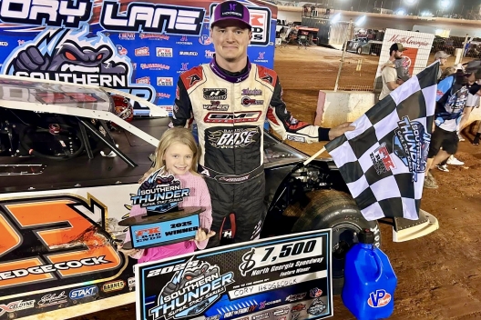 Cory Hedgecock celebrates his second straight Southern Thunder victory.