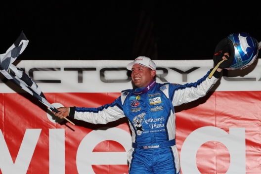 Devin Moran celebrates his second All-Tech Raceway victory.