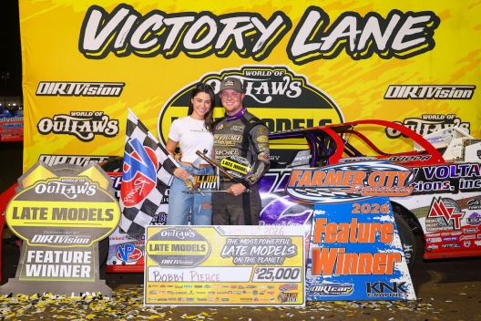 What won the race: Bobby Pierce of Oakwood, Ill., carved through the field from the 10th-starting spot to win Saturday’s 19th annual Illini 100 at Farmer City Raceway, mastering both the top and bottom of the quarter-mile bullring for his third World of Outlaws Late Model Series victory in the $25,000-to-win event. Pierce led the final 19 of 60 laps after overtaking midrace leader Brandon Sheppard on lap 42.